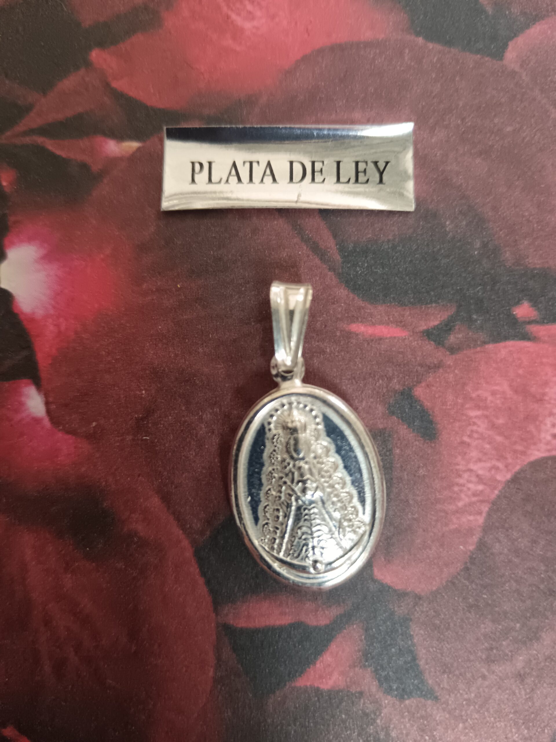 Medalla ovalada de la virgen del Rocío en relieve en plata de Ley.
