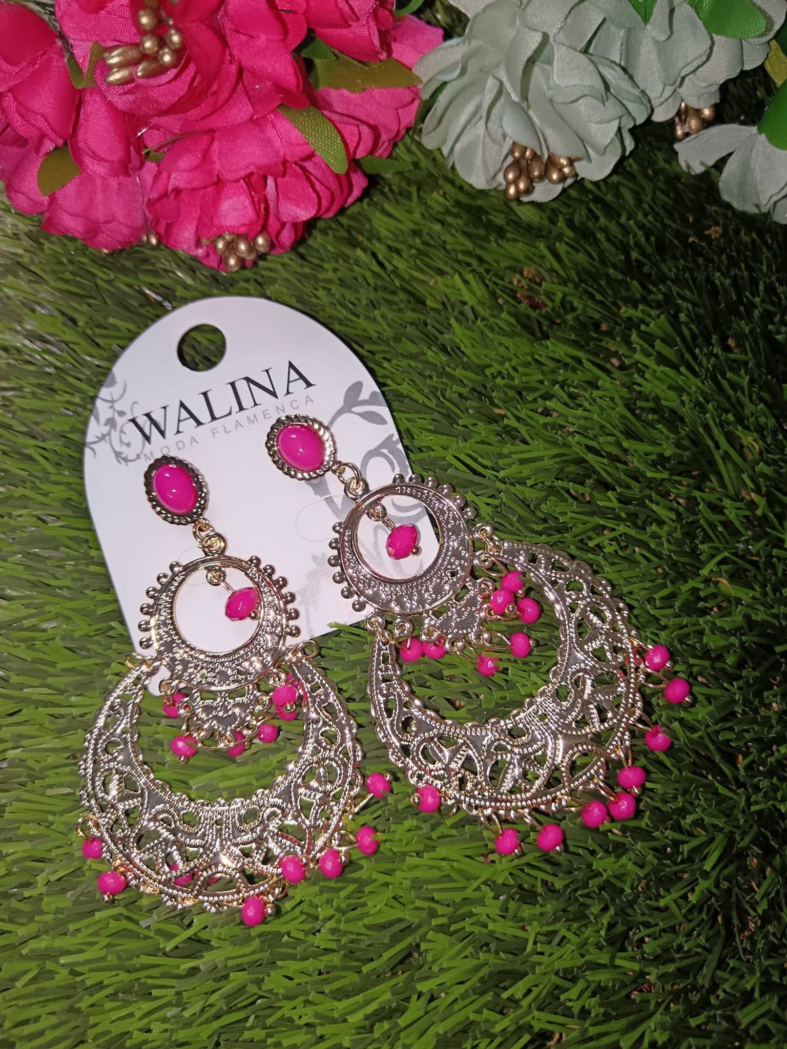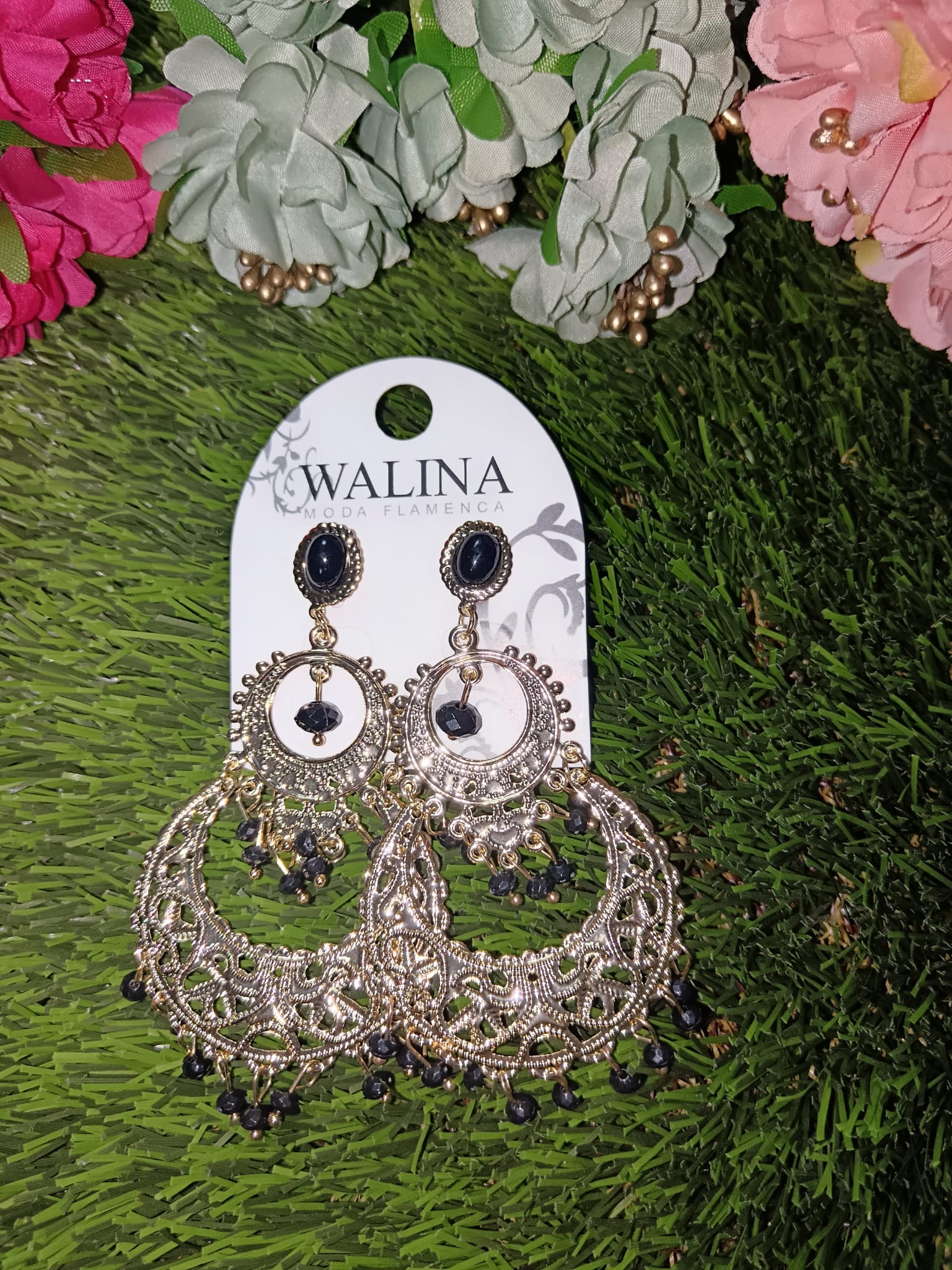 Realza tu look con estos espectaculares pendientes de inspiración flamenca. Con un delicado diseño de filigrana calada en acabado plata envejecida y detalles de piedras , son el complemento perfecto para ferias, romerías o para dar un toque étnico y sofisticado a cualquier conjunto bohemio.