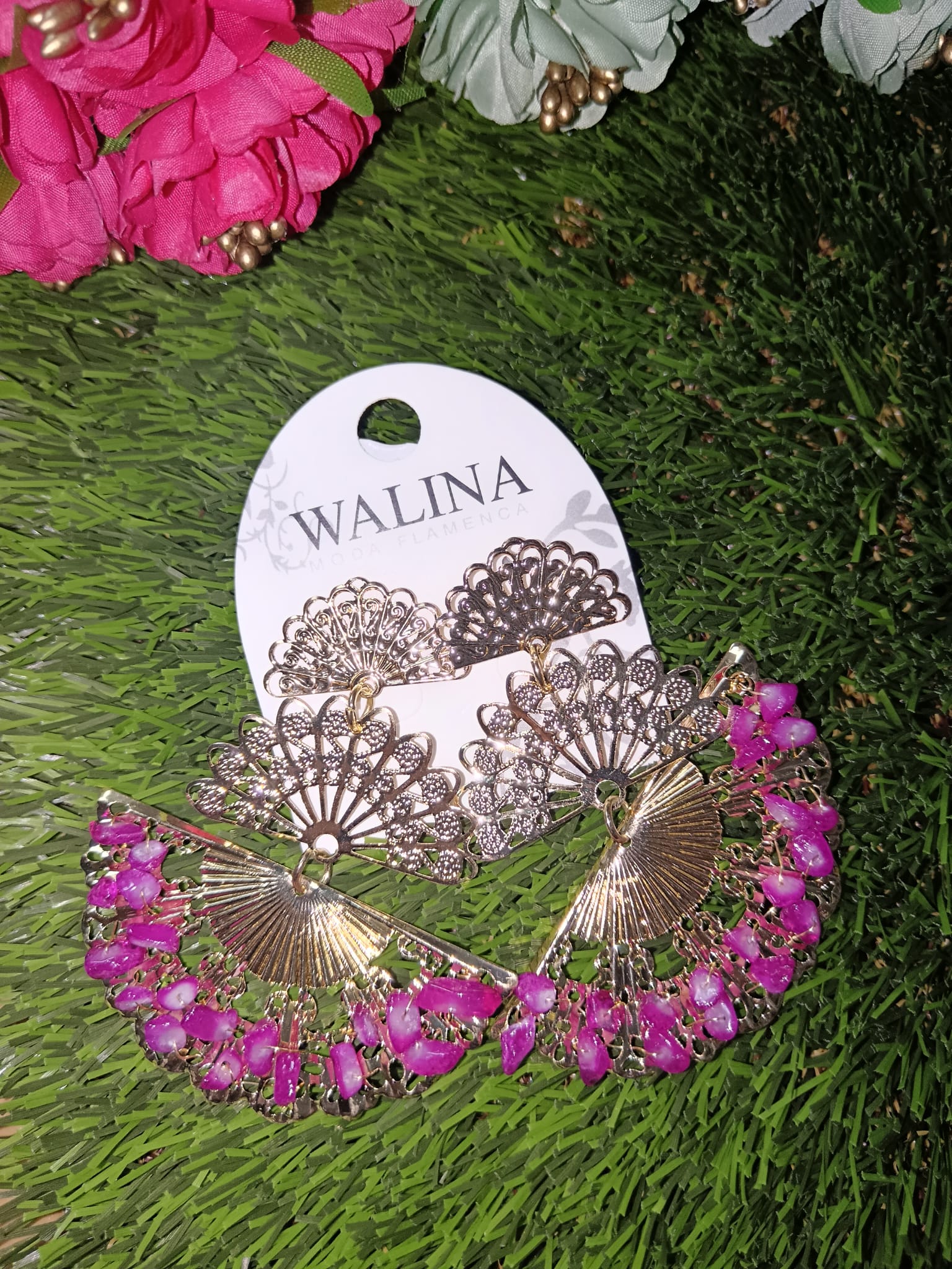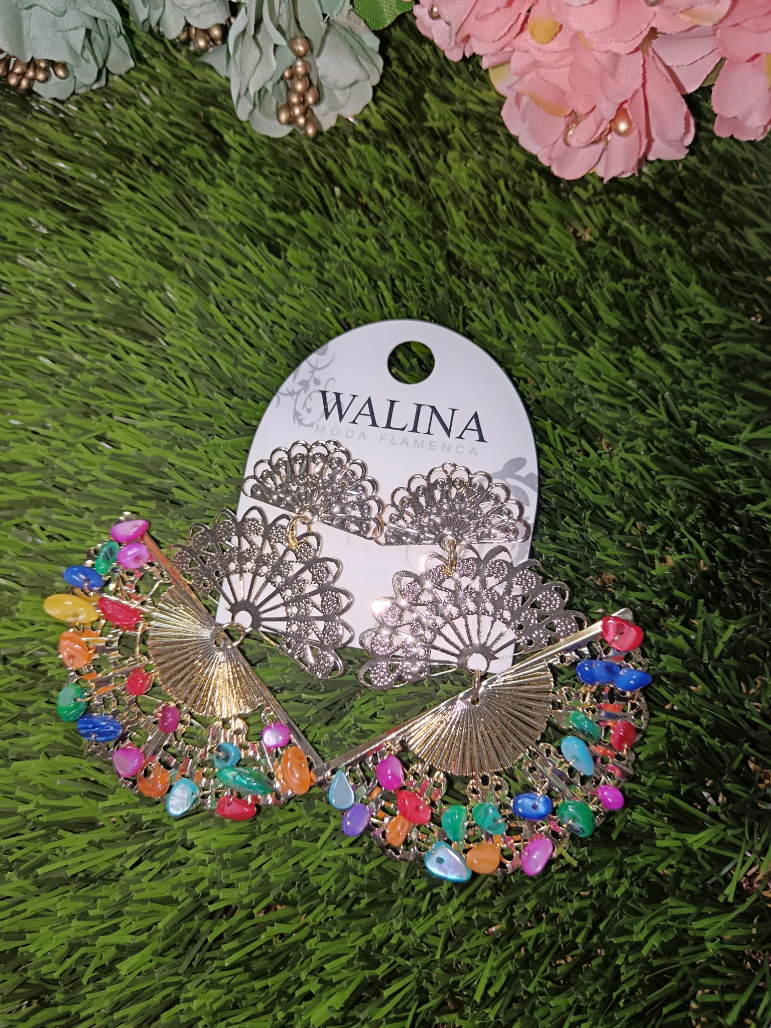 Añade un toque de elegancia y tradición a tu look con estos espectaculares pendientes de la marca Walina. Su diseño artesanal de inspiración flamenca es el complemento ideal tanto para tu traje de gitana como para eventos de fiesta donde quieras destacar.