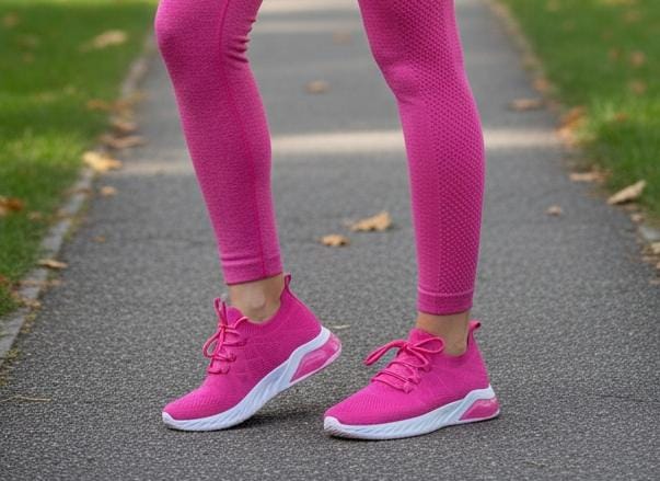 • Color y Diseño: El cuerpo principal de la zapatilla es de un tono rosa fucsia intenso, complementado con cordones a juego y detalles en blanco. La parte superior parece ser de un tejido de malla transpirable, tipo flyknit o similar, que permite una buena ventilación.
